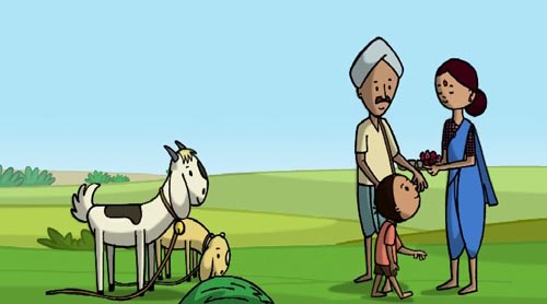 Govind Rajewar storyboarded the film, designed the two goats and props (knife, rope), created the backgrounds for the entire film and animated the first part of the film.